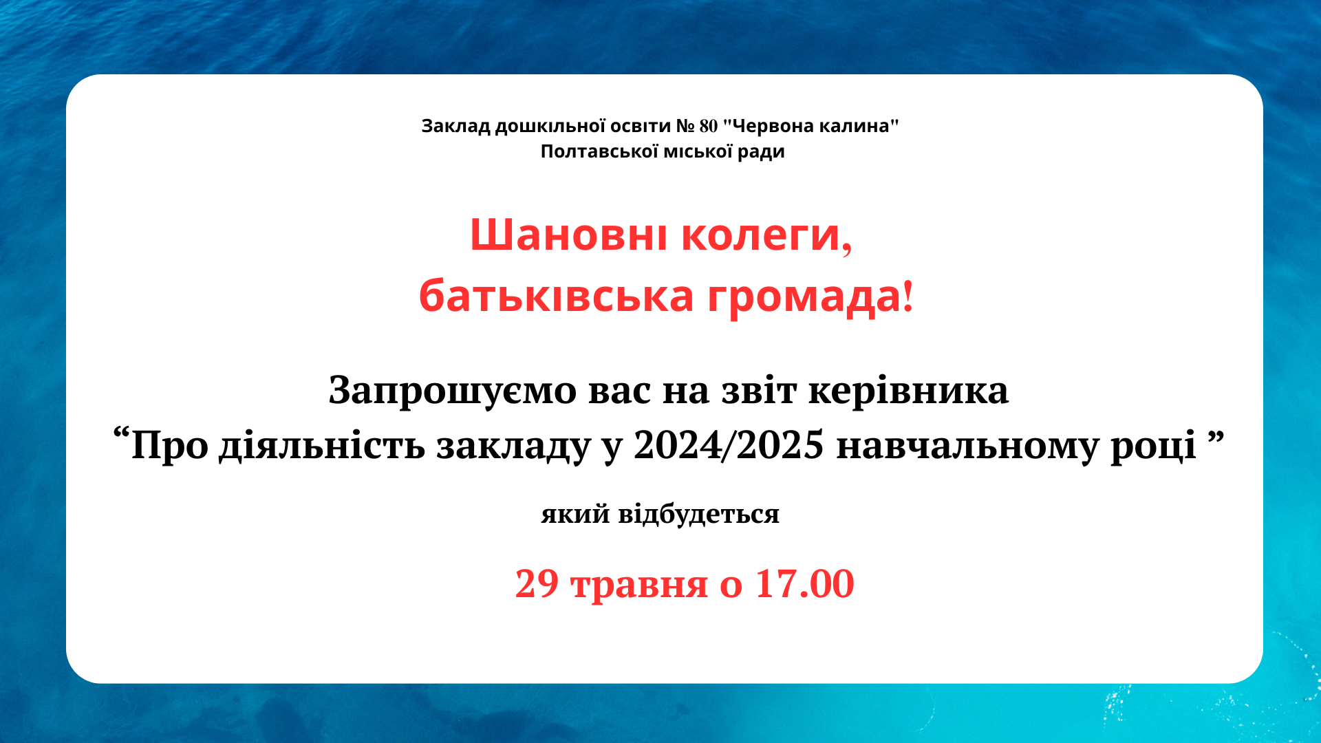 У четвер 29 травня відбудеться звіт керівника за 2024/2025 навчальний рік.